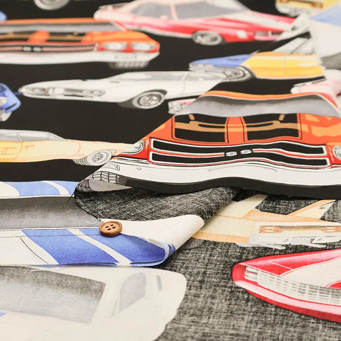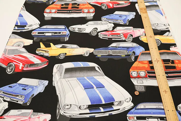 USAコットンシーチングプリント生地 クラシックカー
