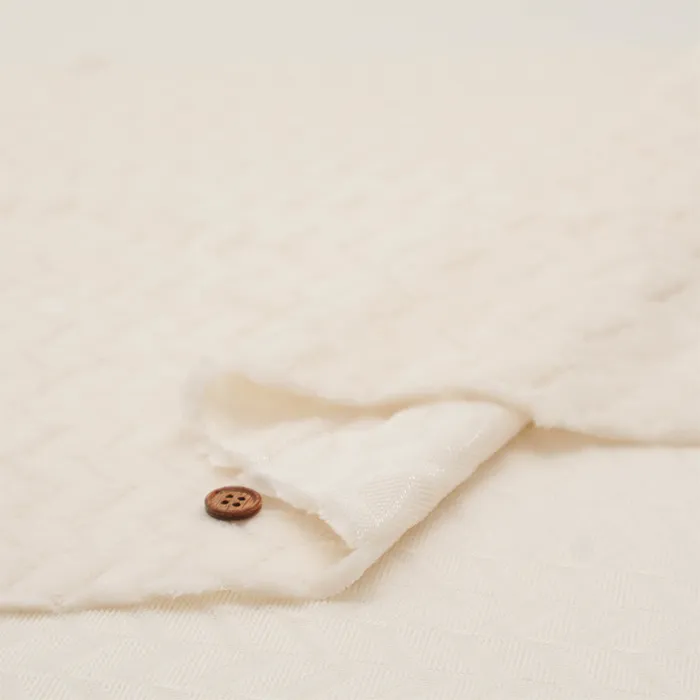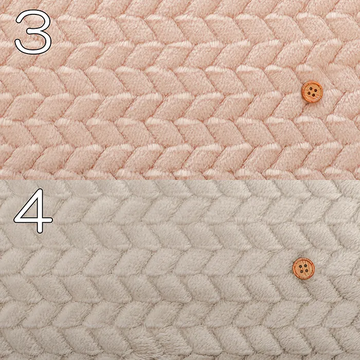 程よい厚みがあり、伸縮性はありません。ふわふわとやわらかい手触りで、肌寒い季節のハンドメイドにおすすめの素材です。