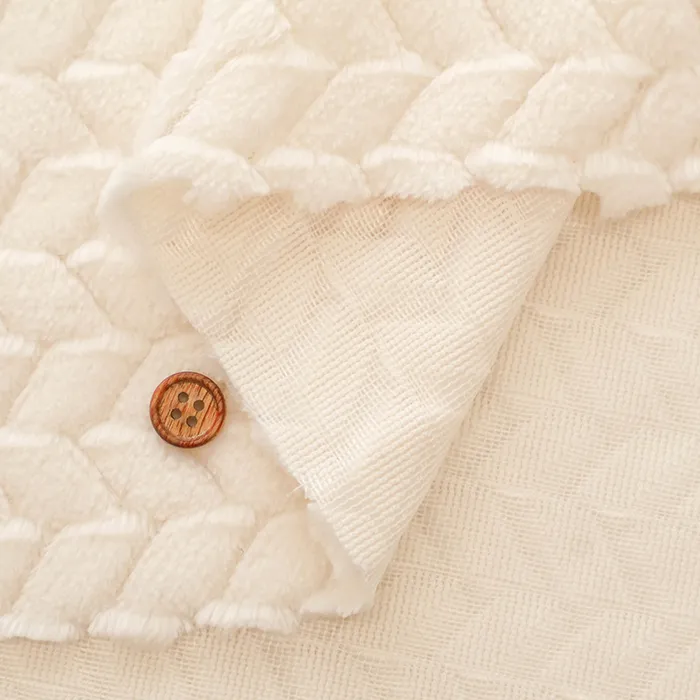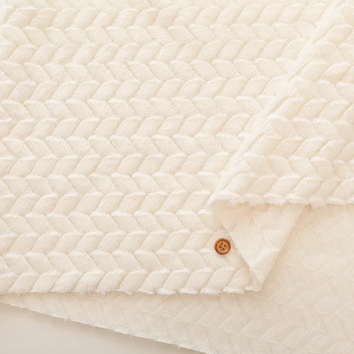 編み模様がおしゃれなジャガード織りのボア生地です。