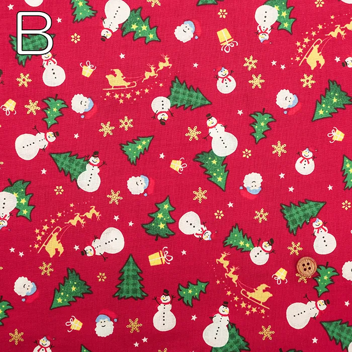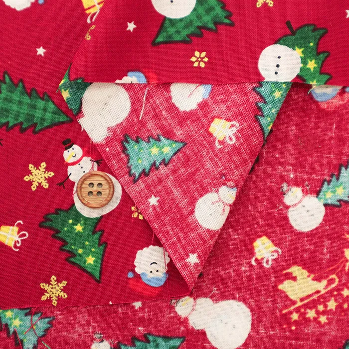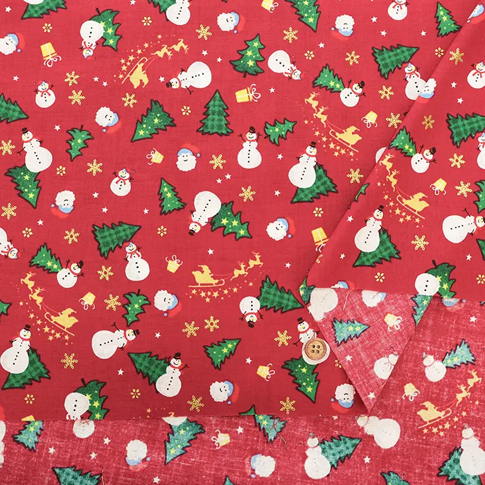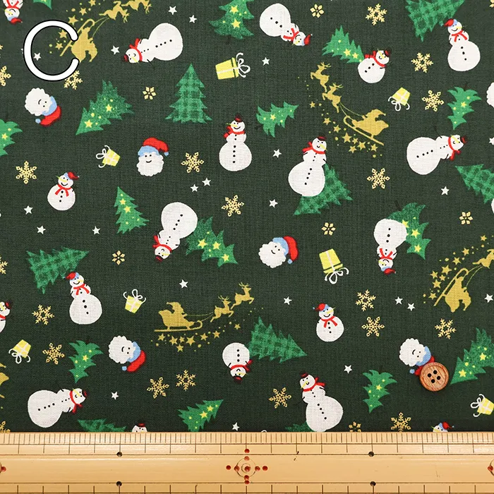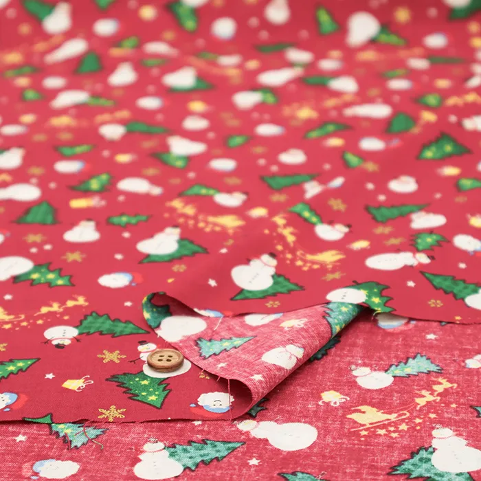 コットンスケアプリント生地 ツリーとゆきだるま