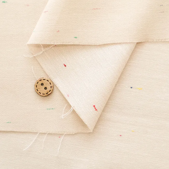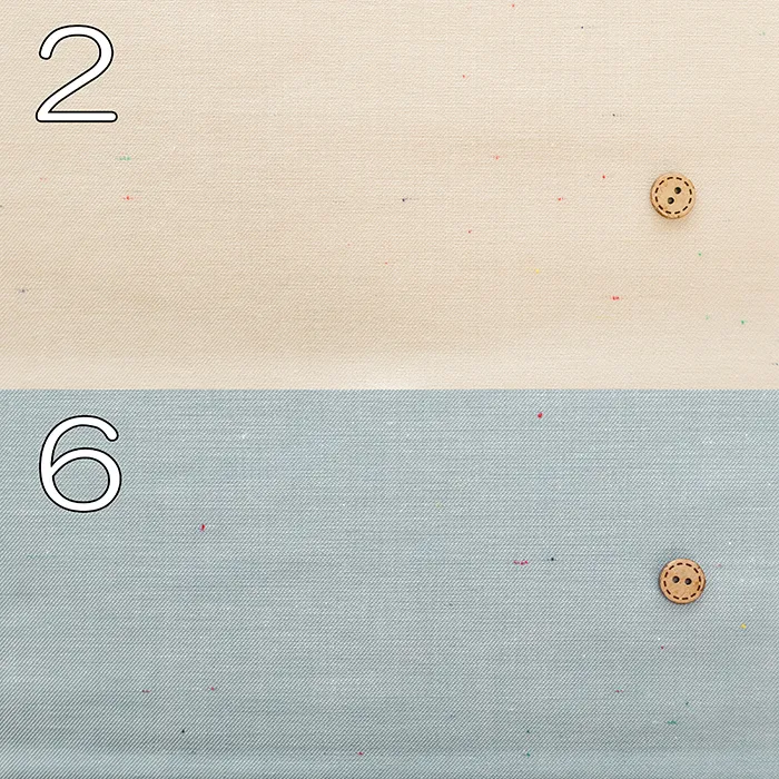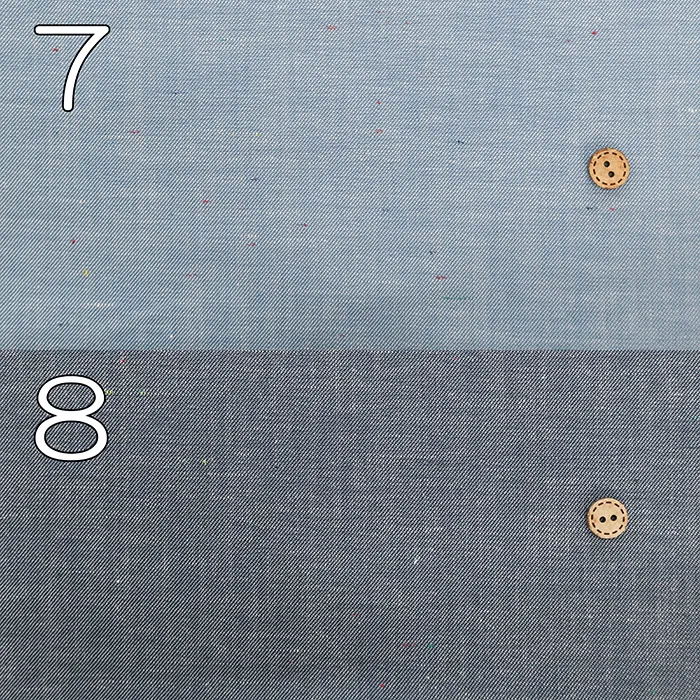 シャンブレーとは、経糸と緯糸を交互に編んでいく平織り生地の一種で、経糸に色の糸、緯糸には白糸を使って織り上げたものを指します。霜降りのような斑点模様がぽつぽつと見えるのが特徴で、爽やかな見た目と肌触りから夏服に適しています。