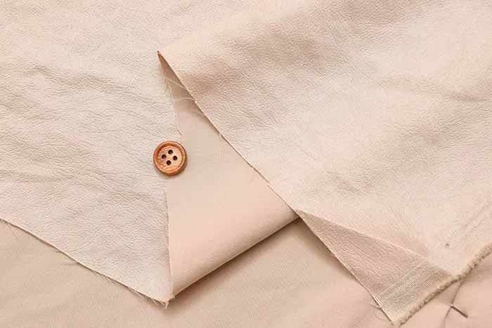表面に凹凸を付けた、型押しレザー風の合皮生地。