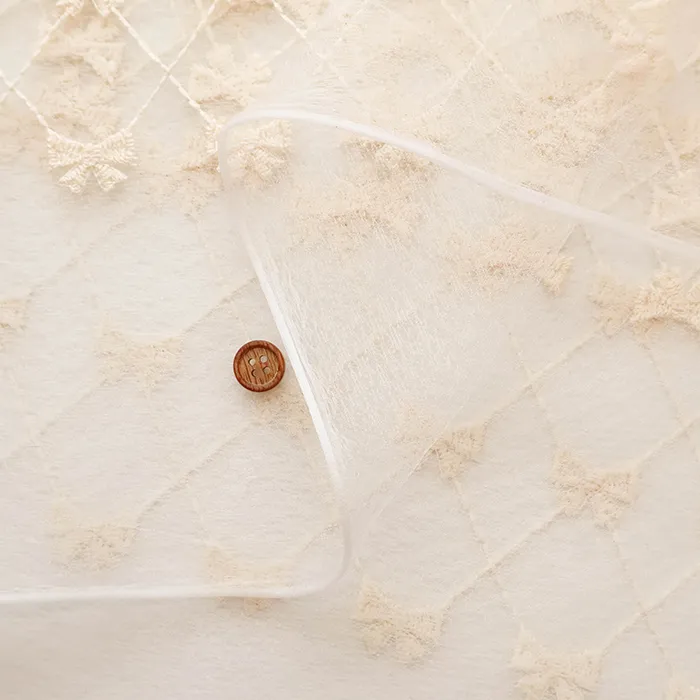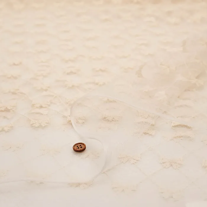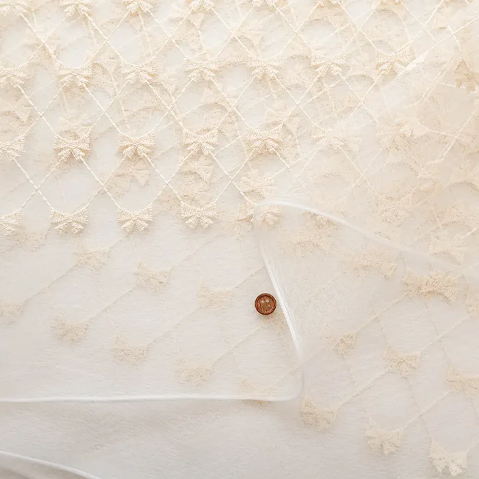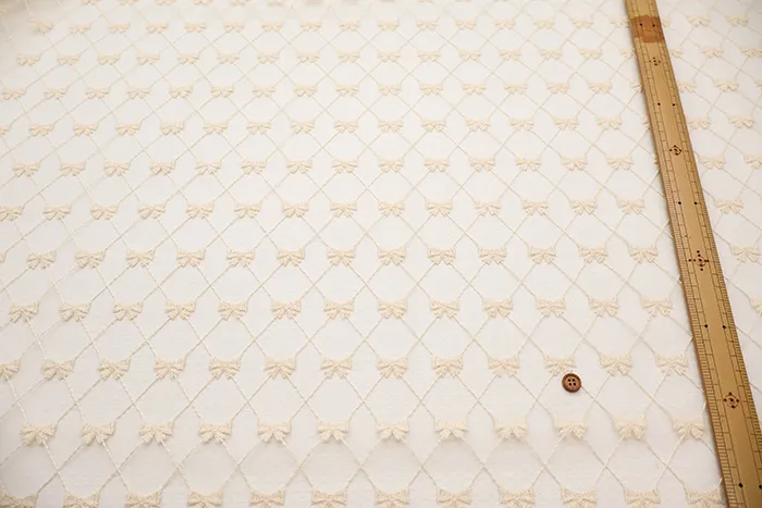 チュール、オーガンジーのような素材にリボン刺繍を施した素敵な素材です。