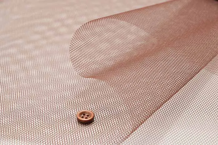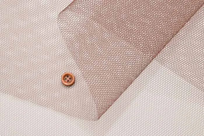 編み物の一種で、六角形の網地に編まれているチュール生地。