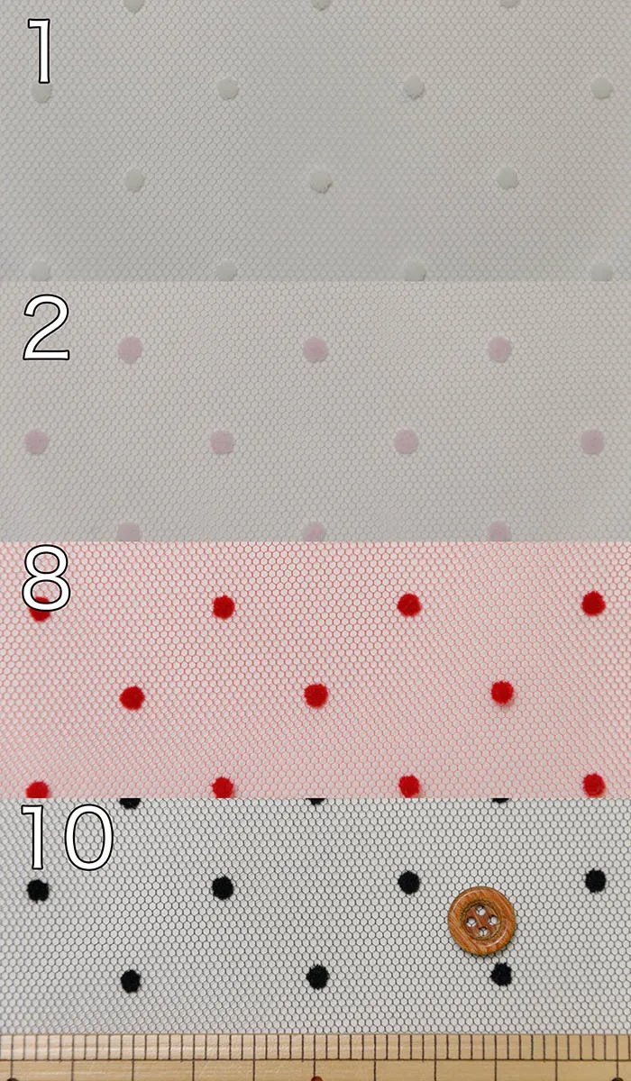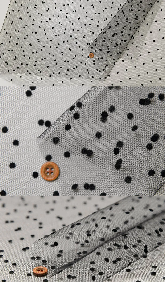チュール生地にレーヨン素材でドット模様を持たせた可愛いデザインの生地です。