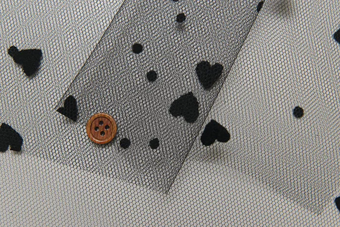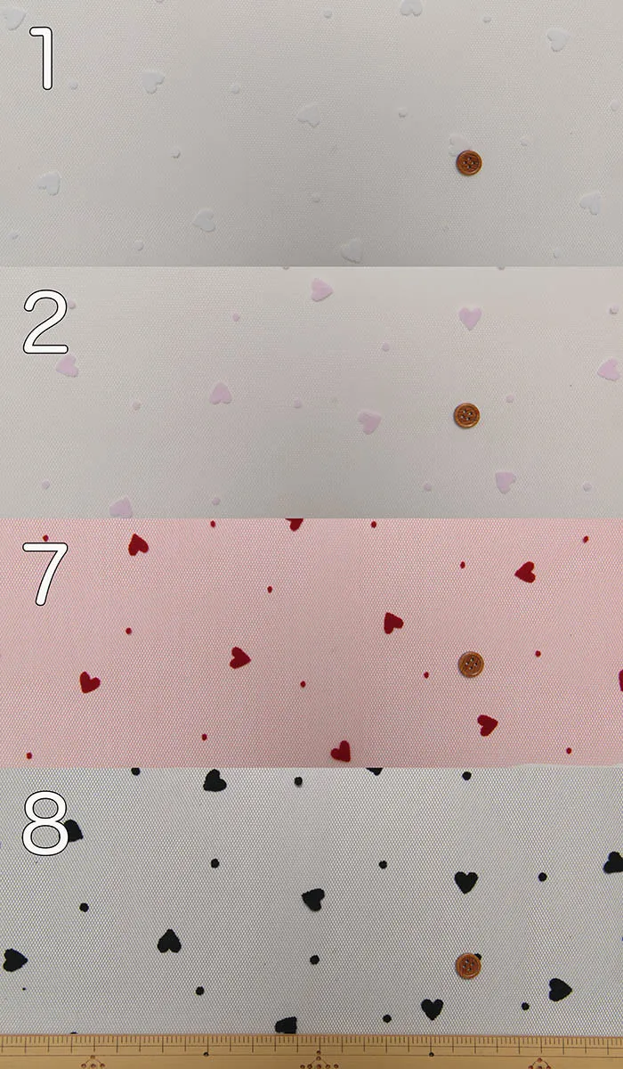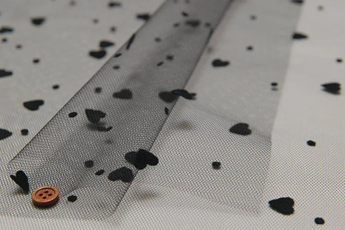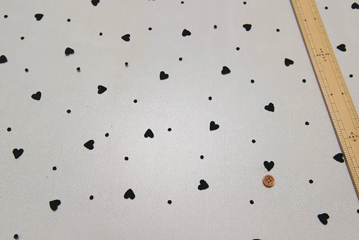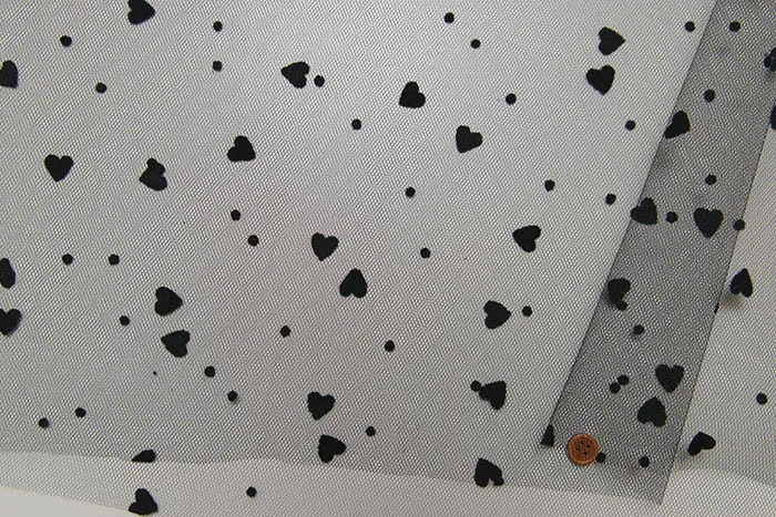 チュール生地にレーヨン素材でハート模様を持たせた可愛いデザインの生地です。