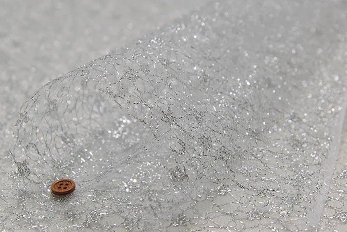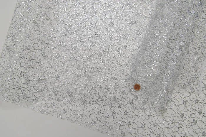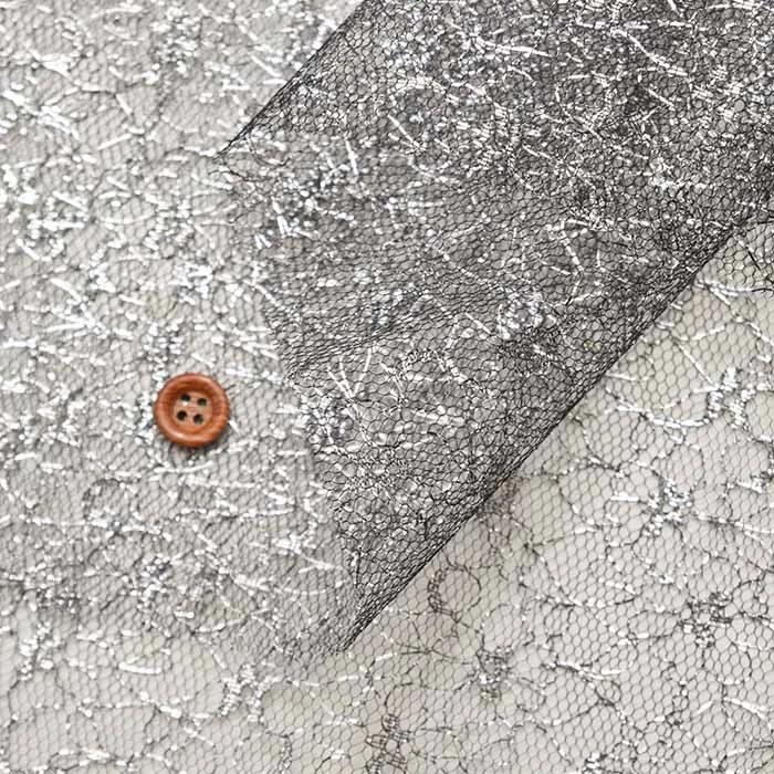 チュールにラメ糸でレース刺繍をした、チュールラメレース。