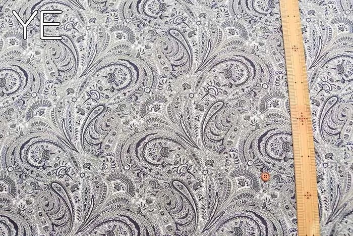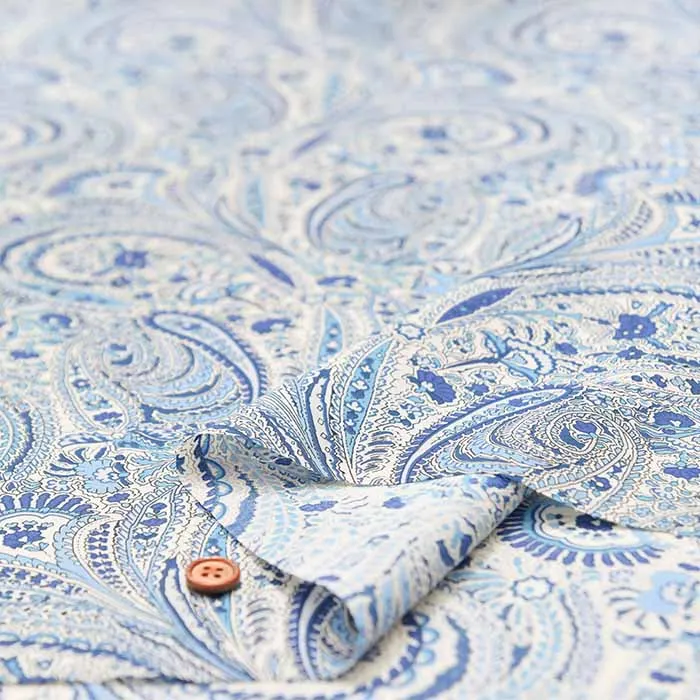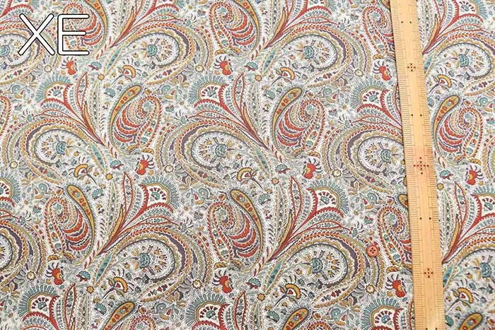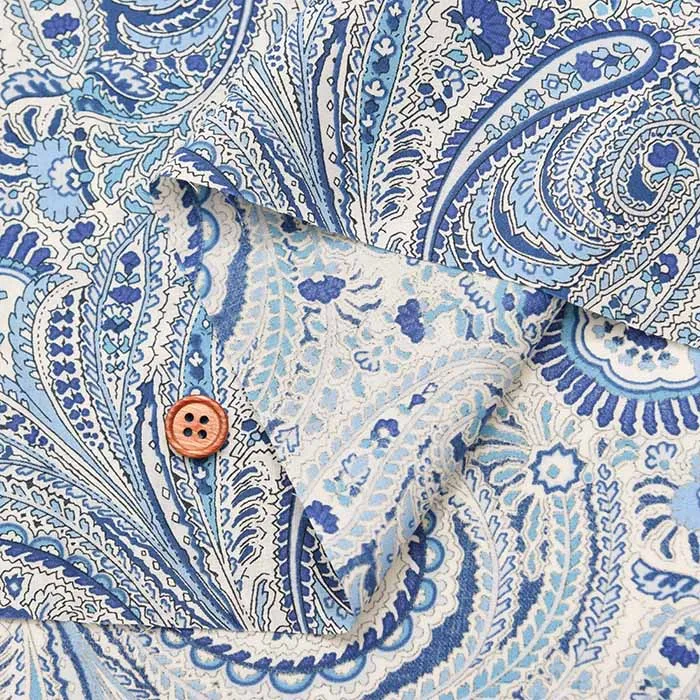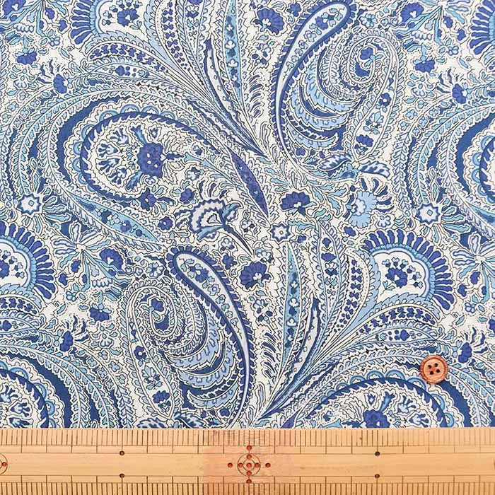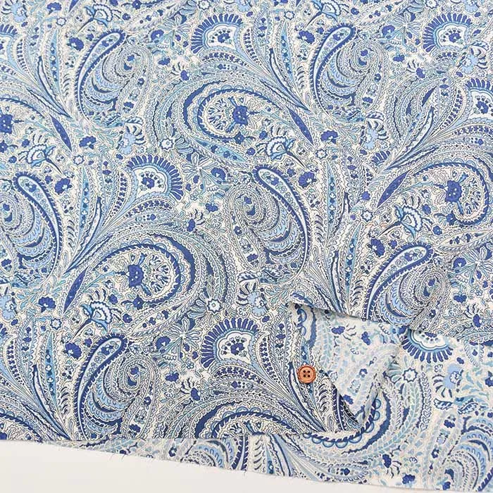 高密度できめ細かいペイズリーは1970年代にプリントされたリバティのアーカイブデザインからインスピレーションを得ました。葉と羽の様なペイズリーが波打つような動きを醸し出します。
