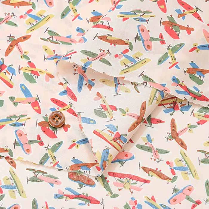 1992年にリバティスタジオが制作したガッシュ画をベースにした、美しいイラストの新しいカンバセーショナルデザインです。アンティークの飛行機が澄み切った空を飛び、驚きと想像力と懐かしさが、楽しく鮮やかな色彩で描かれています。