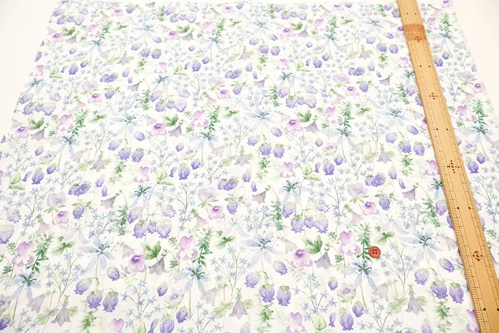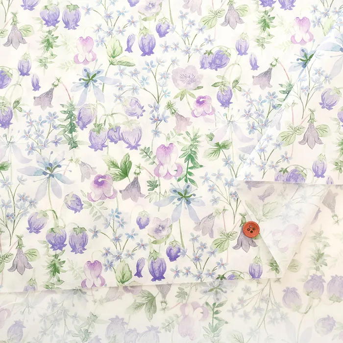 豊かな植物の宝庫としても知られる日本の白馬岳へのオマージュとして制作されたこのパターンは、柔らかくも鮮やかな水彩画で丁寧に手描きされています。長く続いた冬の後の春の喜びと新鮮さを呼び起こす小さくて繊細な花々を、ほぼ半透明の質感で描かれています。