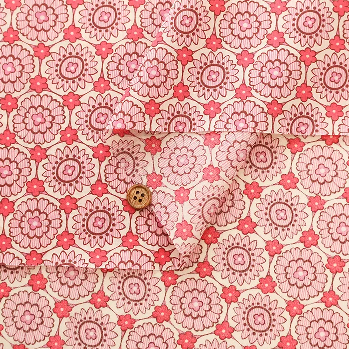「ウィーバーズ・ワンダー」の小さなディテールからインスピレーションを得た魅力的なコーディネートプリントで、シンメトリーな花のエレガントなシンプルさを表現しています。コンテンポラリーな幾何学模様のボタニカルデザインで、タイルにインスパイアされたレイアウトと繊細なストライプの質感によって、より精巧な芸術作品に見られる複雑さを際立たせています。