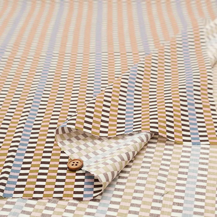テキスタイルの素晴らしい職人技への賛歌としてリバティデザインスタジオで描かれた「ローアン・キアーン」。1880年代にリバティの店舗で開催された教育目的の絹織物展示会からインスパイアされ、小さな長方形のブロックを交互に並べ魅力的なチェックを作りました。鮮やかな色のコントラストが四角形の動きの導線となり、シンプルな織物構造の効果を生み出しています