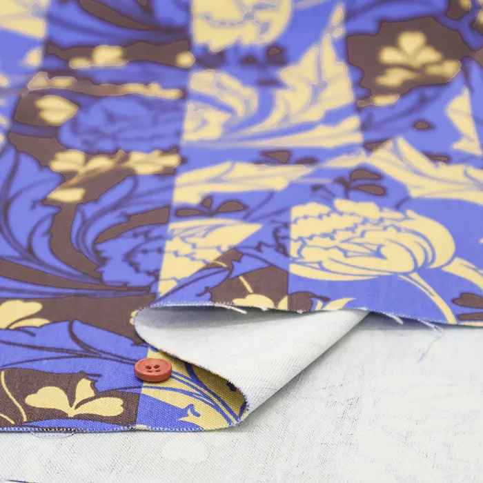 リバティのアーカイブから発見されたアール・ヌーヴォーのアートワークをベースにした、「部分的な繰り返し」のコンセプトを体現するチューリップと葉の印象的なデザインです。