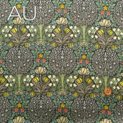 リバティのアーカイブで発見された手描き作品を起点とする、アール・ヌーヴォーの魅力を色濃く映した「ハンリー・フォレスト」。様式化された果樹や花々が、左右対称の構成で広がり、密度の高いグラフィカルな表情を生み出しています。ムーアクロフト陶器に通じる独自のスタイルとの親和性からセレクトされ、繊細な水彩で描き起こすことで、大胆な線描をやわらかく和らげ、全体に心地よいバランスをもたらしています。