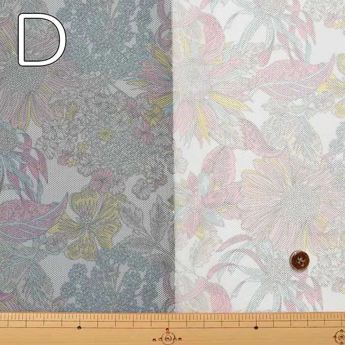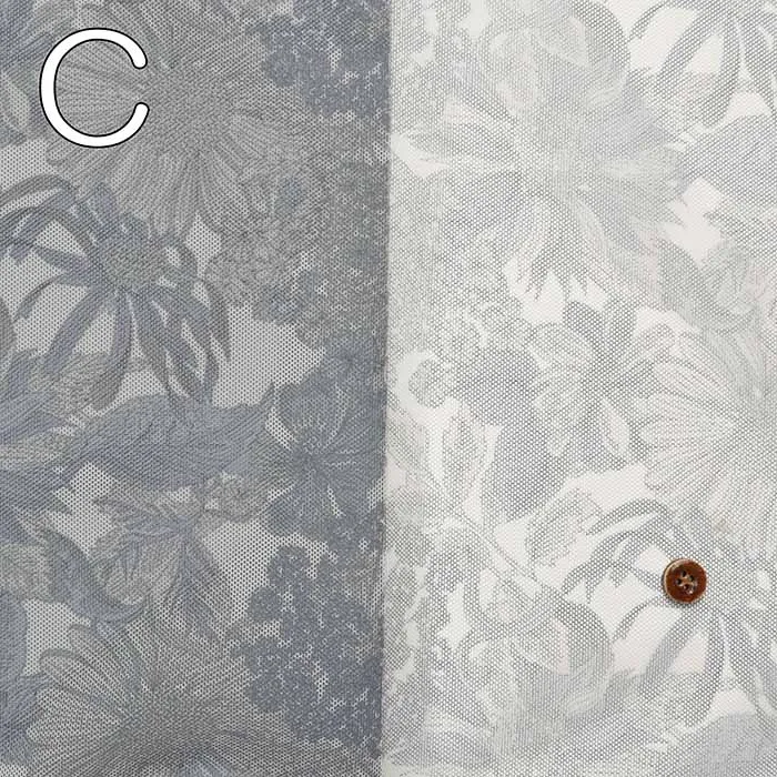 目が細かくソフトな肌触りで上品なドレープ感と透け感が高級な印象を与えるソフトチュール。無地生地など他生地と重ねてスカートや、シャツ、ブラウス、ワンピースなどのウェアはもちろん、ヘアクセサリーにもおすすめです。