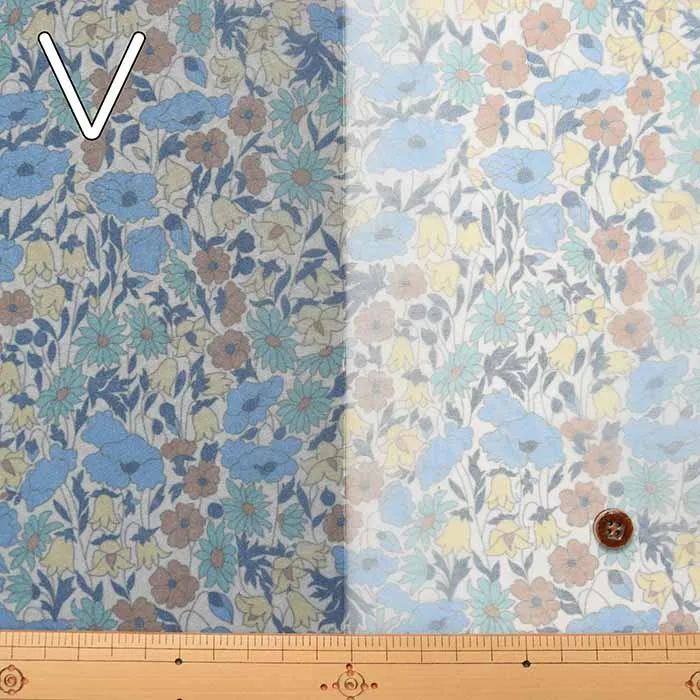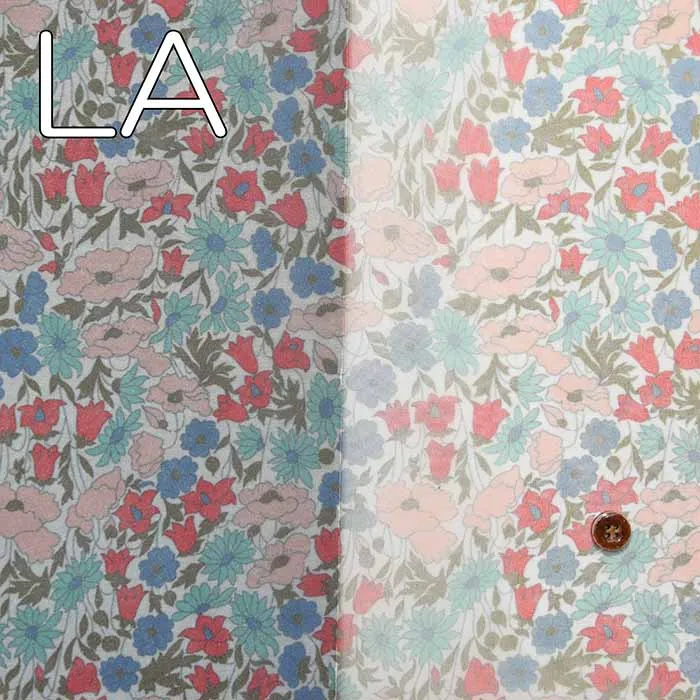 リサイクルPET繊維を使用した、サンコロナ小田オリジナルの「リサイクルポリエステルオーガンジー」に、リバティジャパンとしては初めて「転写プリント」を用いた、水を使わず汚水を出さない、環境配慮型の新たなサステナブル素材となっております。