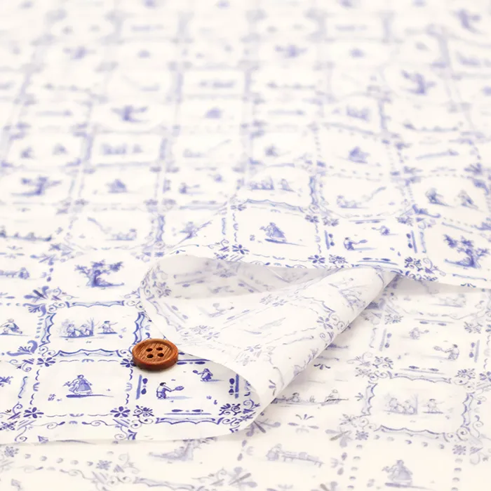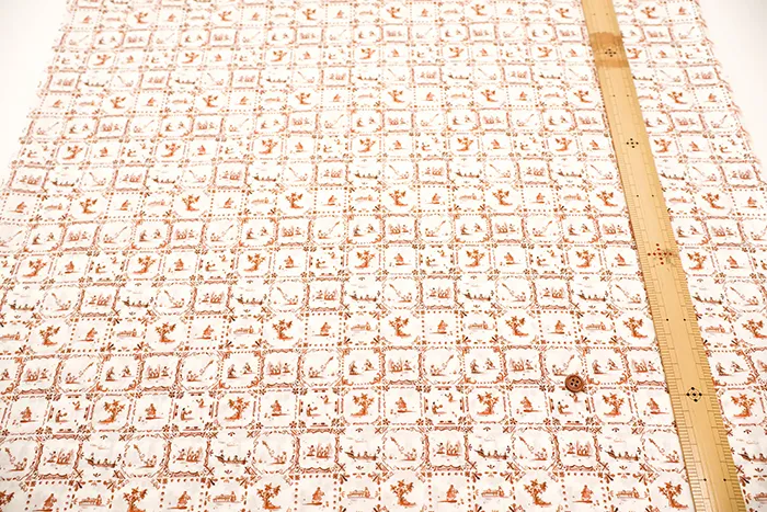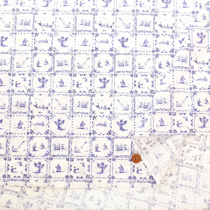 リバティの店内にある古典的なデルフト・タイルからヒントを得て手描きされたミニチュア風景画には、アーサー・リバティがスタッフのためにしばしば企画した野外集会を彷彿とさせるキャラクターや娯楽が描かれています。