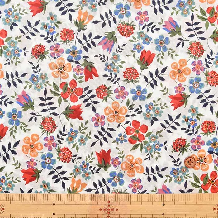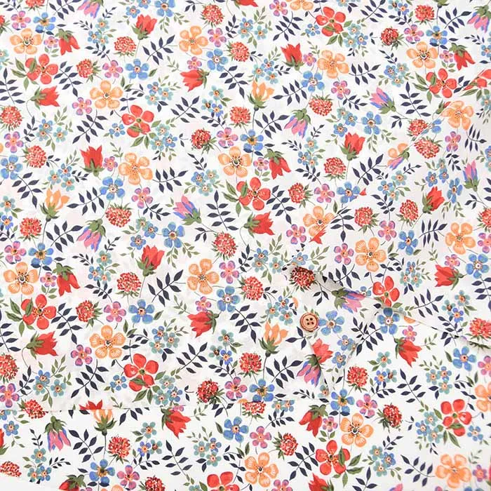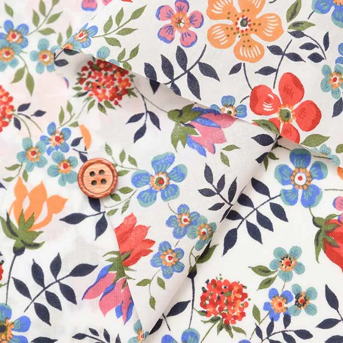 1994年にリバティ社が購入したデザインで、1997年からクラシックコレクションに加入しました。スペースのある構図と明るく軽快なこの柄は、アイボリー系の淡色グランドの配色のみならず、ネイビーなどの濃色のグランドの配色まで数多くの配色のヴァリエーションがあり、デザイン発表以来、リバティプリントを代表する1柄として、不動の人気を保っています。