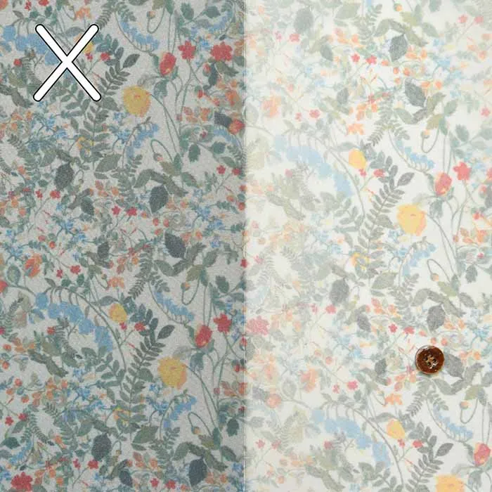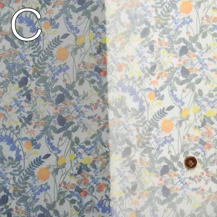 リサイクルPET繊維を使用した、サンコロナ小田オリジナルの「リサイクルポリエステルオーガンジー」に、リバティジャパンとしては初めて「転写プリント」を用いた、水を使わず汚水を出さない、環境配慮型の新たなサステナブル素材となっております。