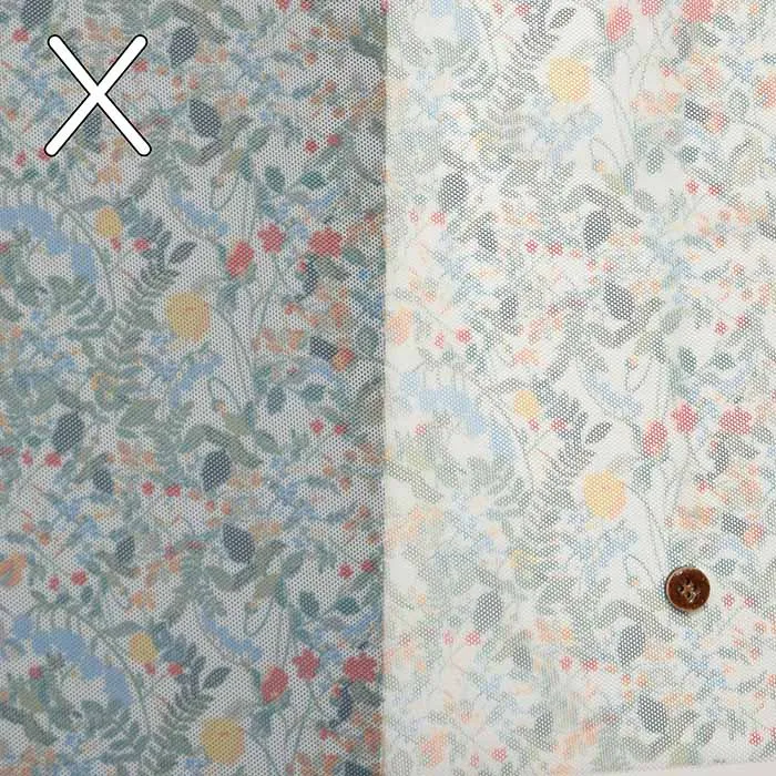 目が細かくソフトな肌触りで上品なドレープ感と透け感が高級な印象を与えるソフトチュール。無地生地など他生地と重ねてスカートや、シャツ、ブラウス、ワンピースなどのウェアはもちろん、ヘアクセサリーにもおすすめです。