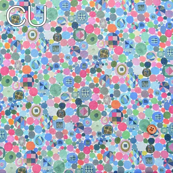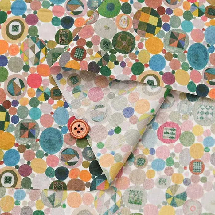 1970年にワイルドスミスのニューヨークの出版社から依頼された「ヘンゼルとグレーテル」のポスターから抽出した装飾的な円を描いたデザインです。手描きの円が不完全な質感になることで、リバティのプリントがオリジナル作品に由来していても、全てオリジナルで描かれていることを祝しています。円の中に描かれた幾何学模様や装飾的な要素がデザインにさらなるディテールと奥行きを与えています。