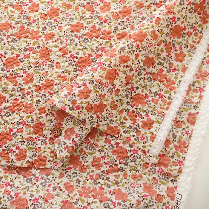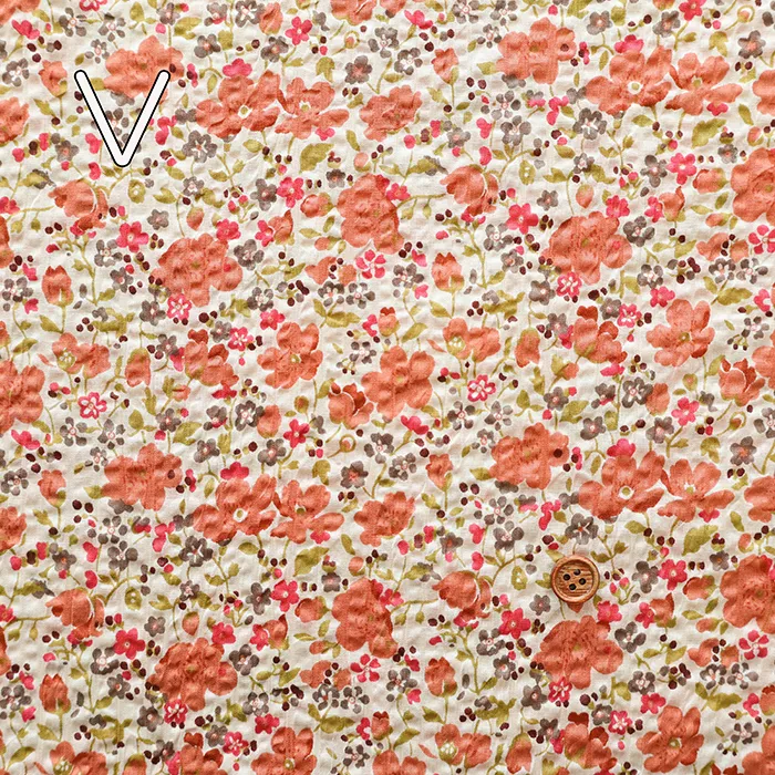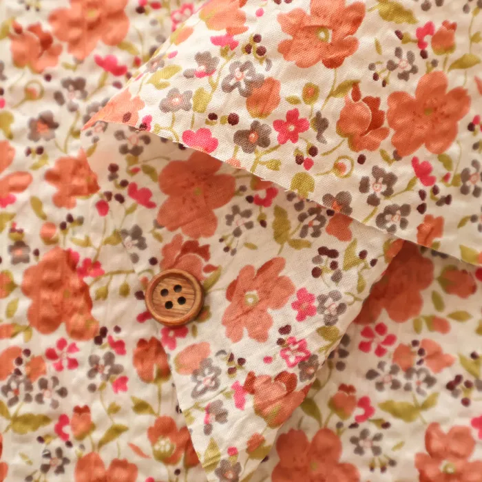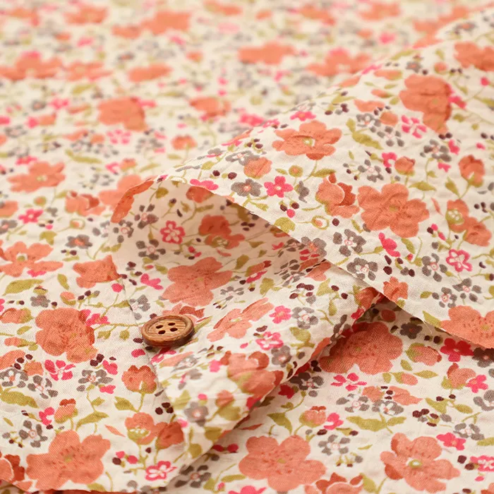 細番手の綿ローンに独特の加工を施し、表面に凹凸やシワ感を加えることで清涼感あふれる素材に仕上げています。