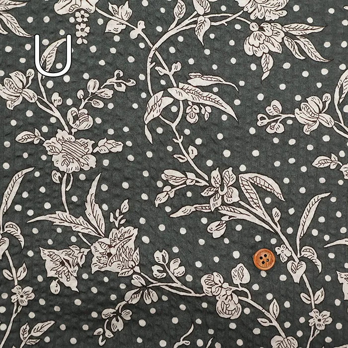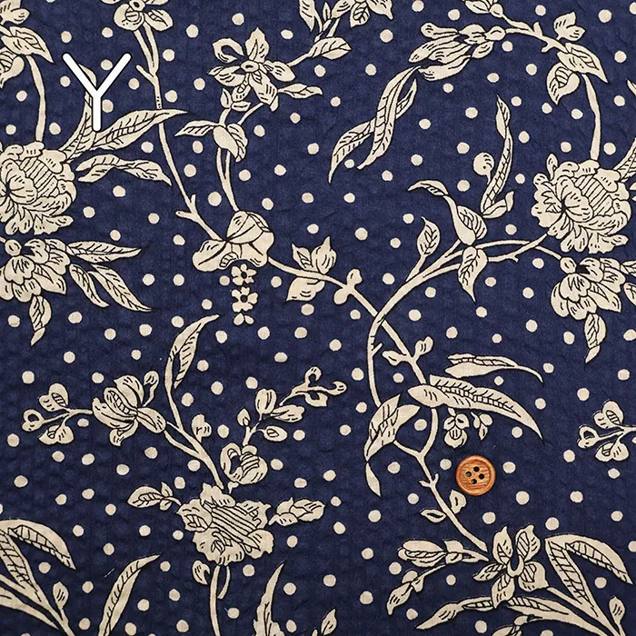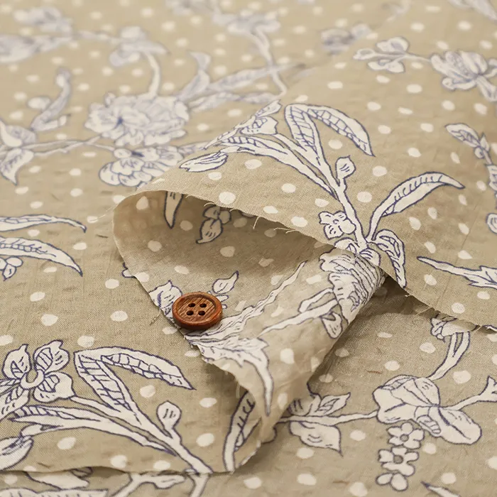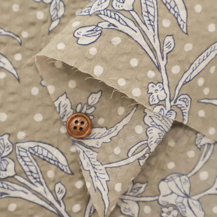 細番手の綿ローンに独特の加工を施し、表面に凹凸やシワ感を加えることで清涼感あふれる素材に仕上げています。