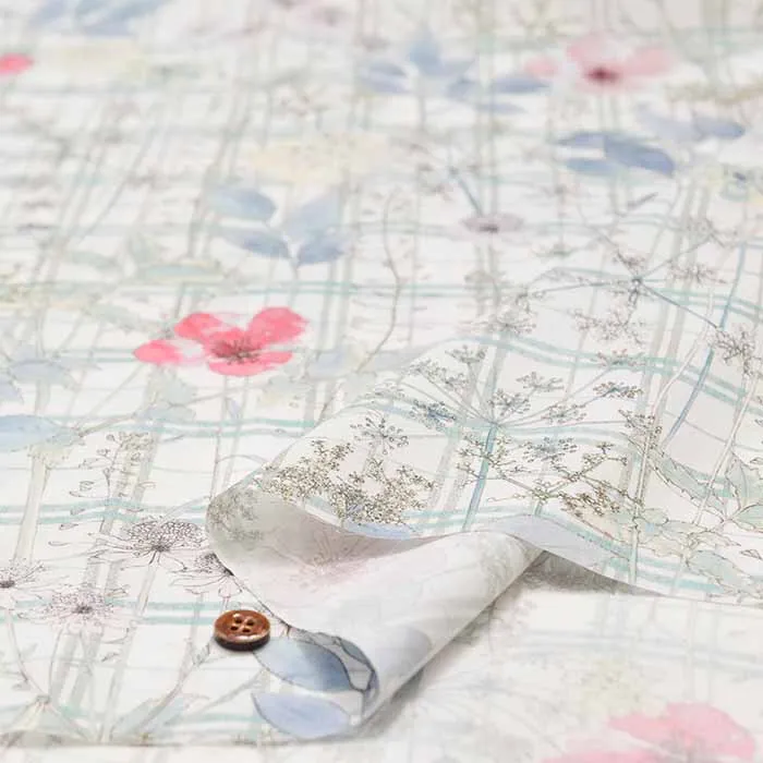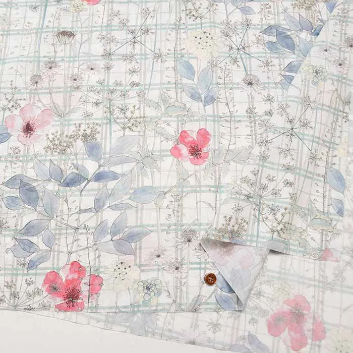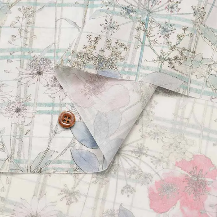 正確なブラシストロークと繊細な鉛筆跡を忠実にプリントした「イルマズ・ガーデン」は、最もシンプルで美しい自然を表現しています。ユーフォルビア、ポピー、アストランティア、イベリスが柔らかな水彩で手描きされ、透かし織りの格子柄と組み合わさり、幻想的な草原の印象を作り出しています。