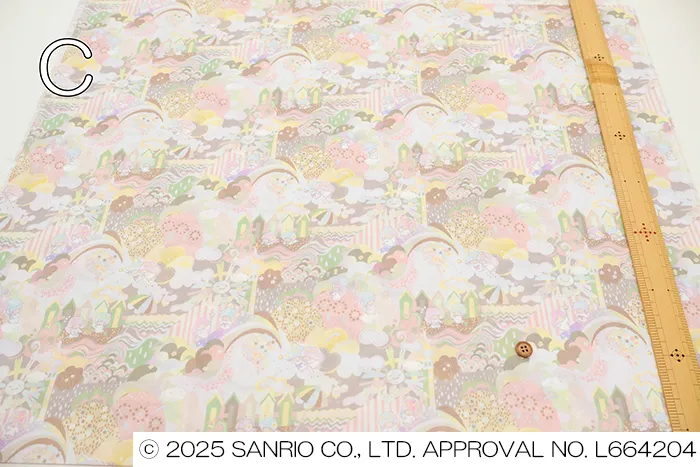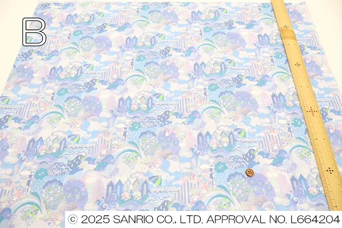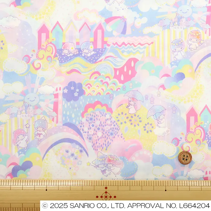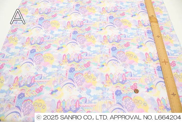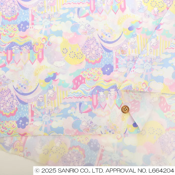2016年に手描きで制作されたリバティのファンタジックな作品をベースに、英国の夏の魅力とサンリオの世界のきらめきを融合させました。緩やかな丘は砂浜へと続き、城や雲、花、波が織りなす想像のパッチワークが広がります。美しい景色の中で、リトルツインスターズは細部まで豊かな世界を遊び心いっぱいに探検し、発見の喜びを楽しんでいます。