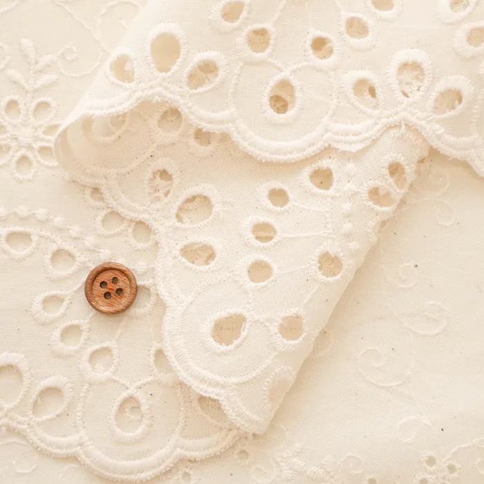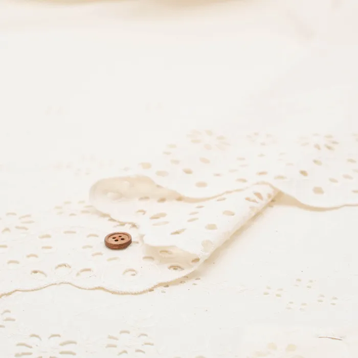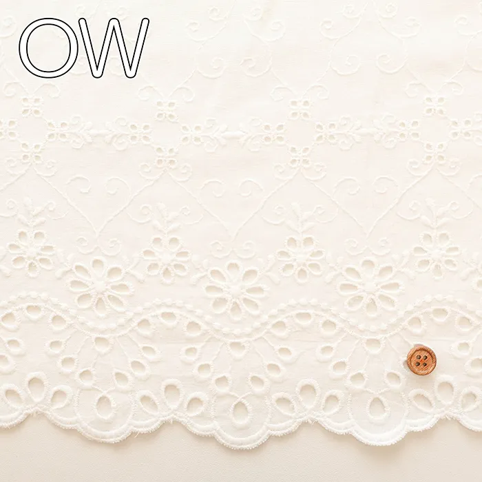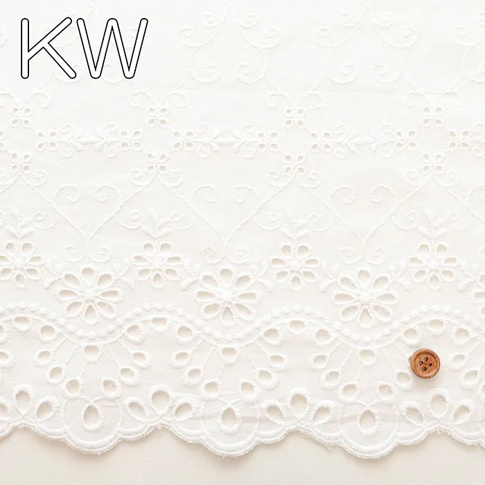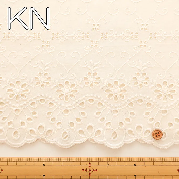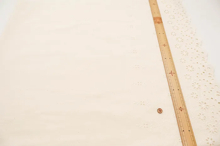 生地の片耳側にのみ、レース刺繍で柄が施されています。