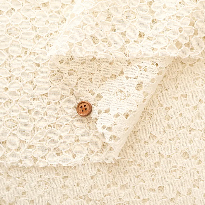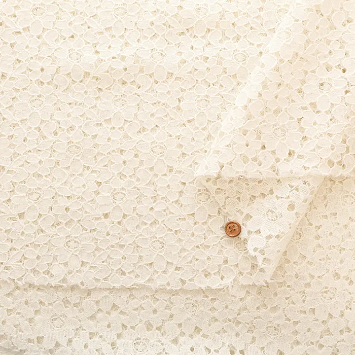 刺繍のレースとは違い、編みながら柄を作っているので比較的仕上がりが平坦で立体感は少ないです。