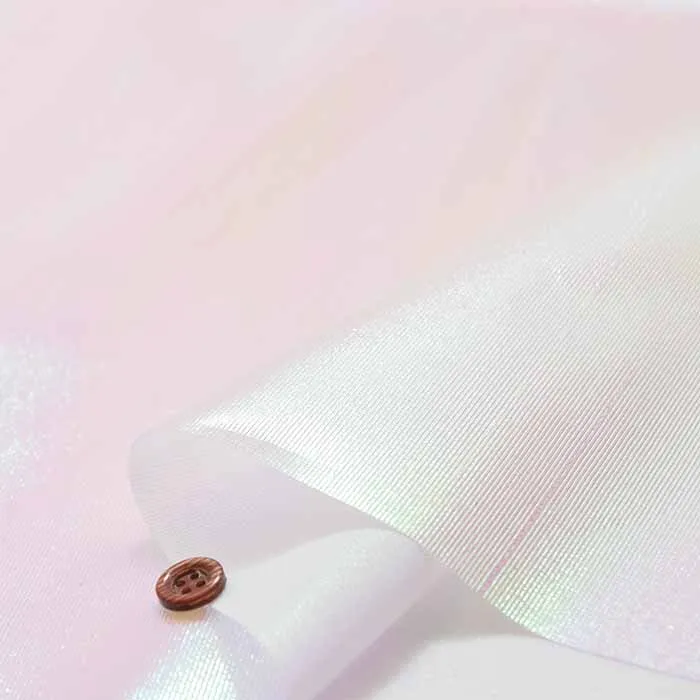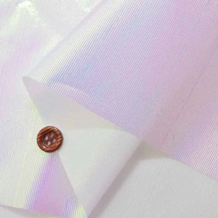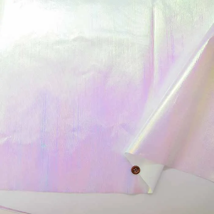 オーロラみたいに非常に綺麗な光沢感がある薄手のナイロン風の生地です。