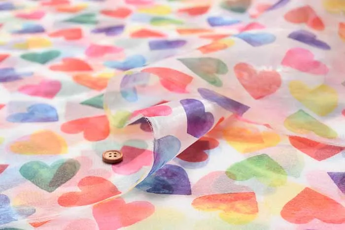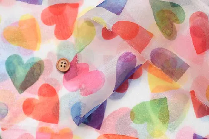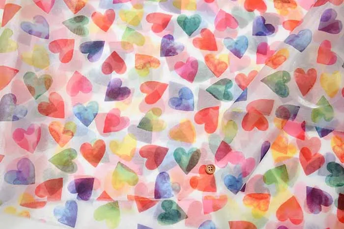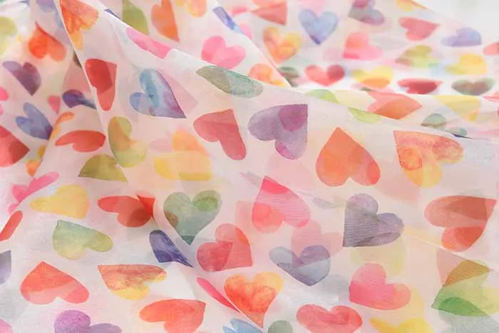 ポリエステル オーガンジープリント生地 ハート