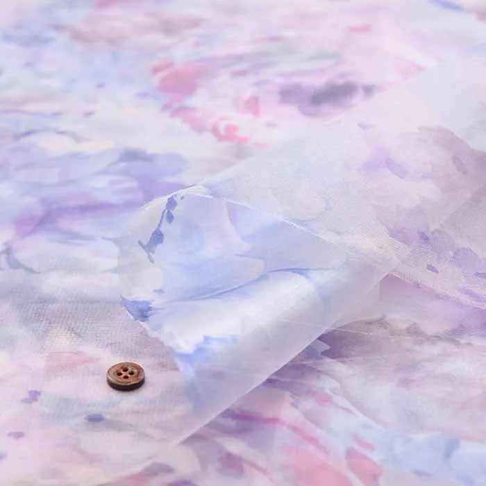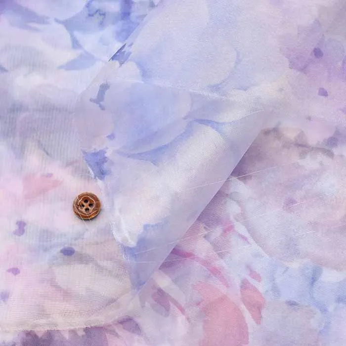 オーガンジーとは、平織で薄手、軽く透けている生地のことで、上品な透け感と光沢があり、程良いハリ感を持ち合わせいるのが特徴的です。