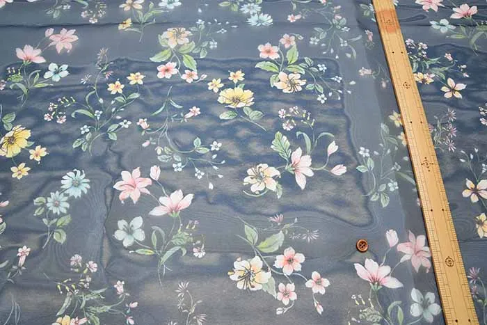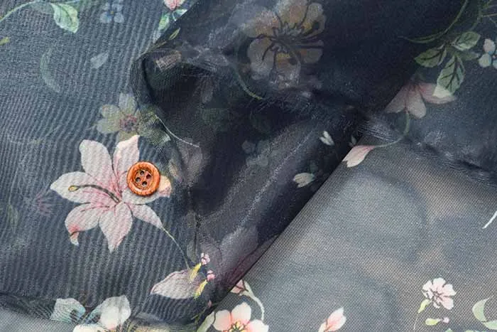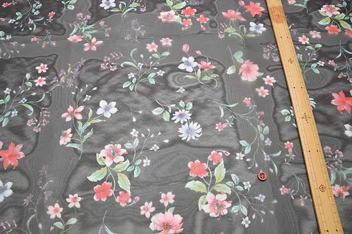 オーガンジーとは、平織で薄手、軽く透けている生地のことで、上品な透け感と光沢があり、程良いハリ感を持ち合わせいるのが特徴的です。