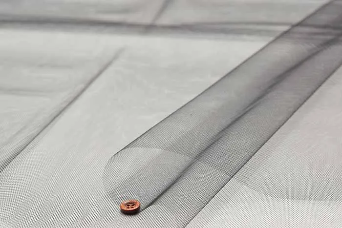 編み物の一種で、六角形の網地に編まれているチュール生地。