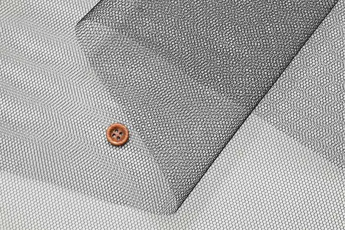 編み物の一種で、六角形の網地に編まれているチュール生地。