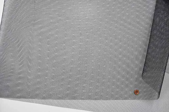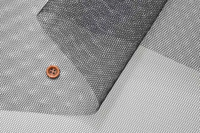 編み物の一種で、六角形の網地に編まれているチュール生地。