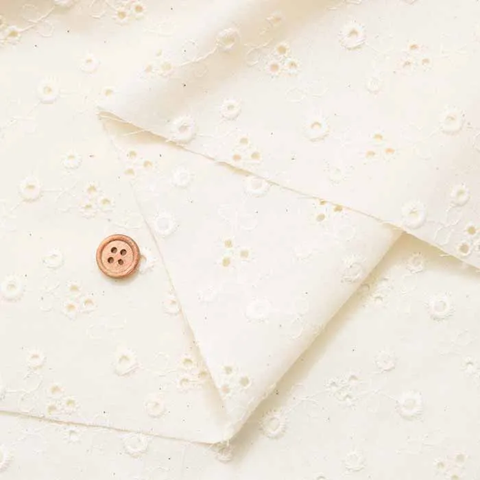 生地と同色のレース刺しゅうが施されており、シンプルなデザインですので服地から雑貨まで幅広くお使いいただけます。