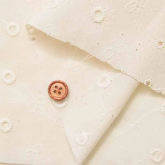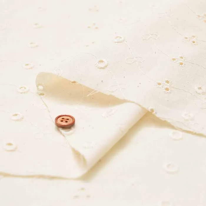 キャンブリック生地にレース刺繍で柄を入れた生地です。