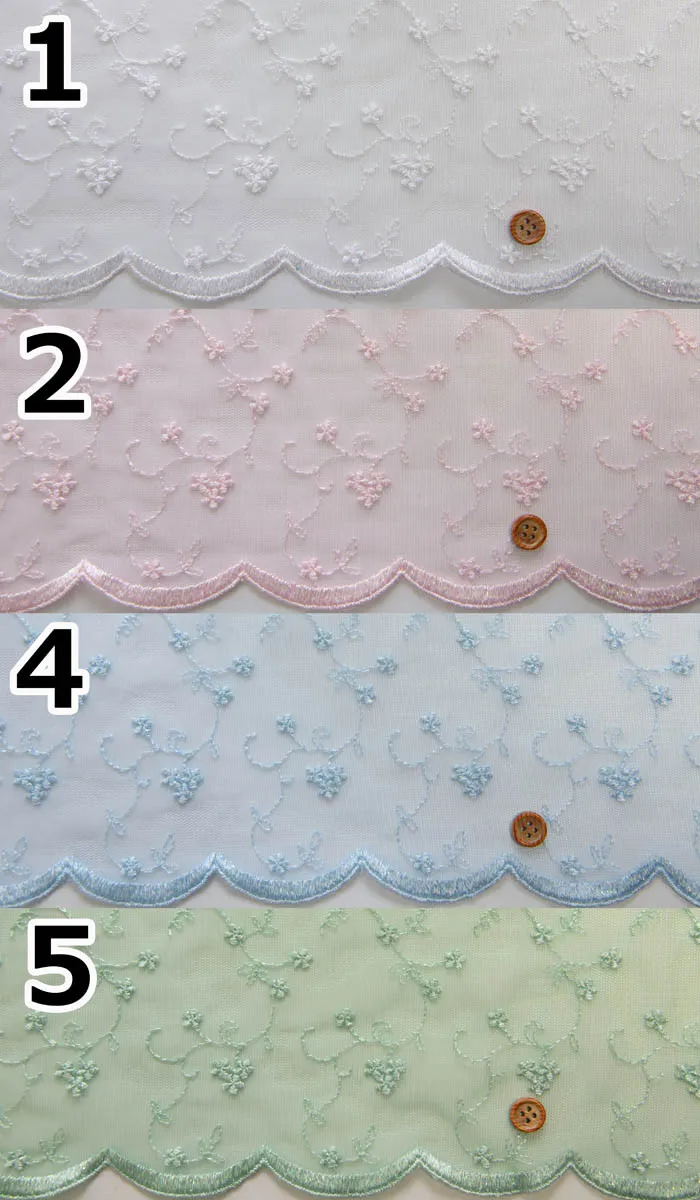 生地の片耳だけスカラップ刺繍になっておりますので、是非とも裾等に上手くご利用下さい。