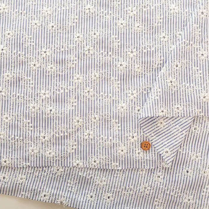 コットンレース生地 ストライプフラワー