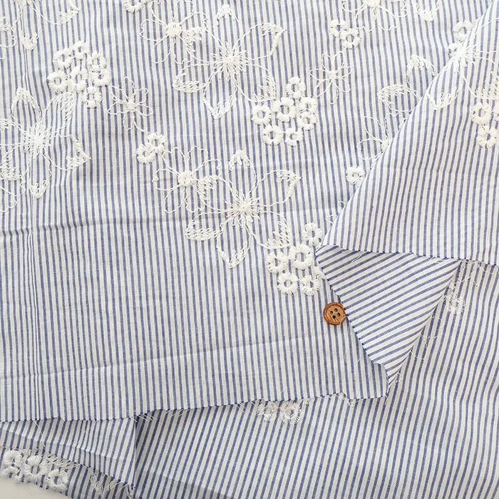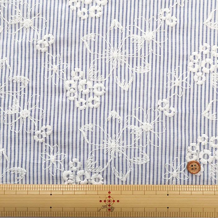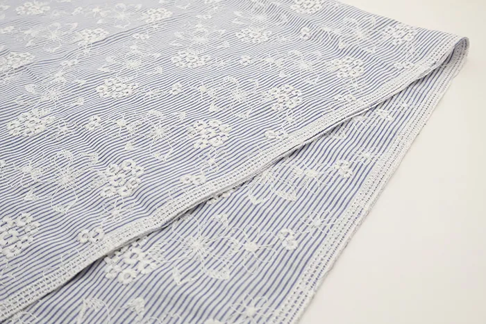 コットンストライプフラワーレース生地