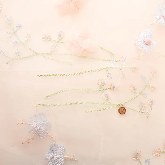 中国製 ナイロンチュール生地 ポンポンフラワー