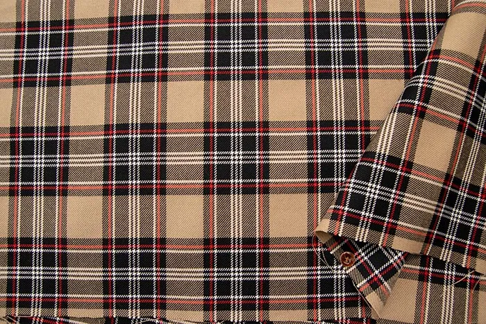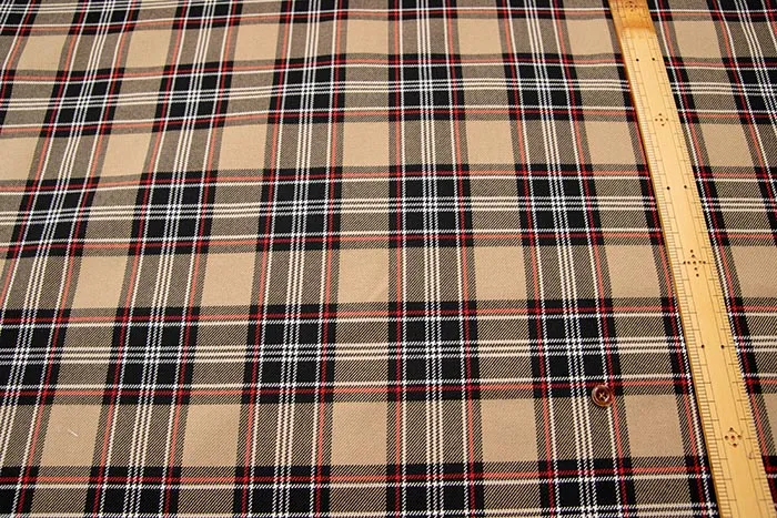 ウールの雰囲気を上手く再現しつつ、取り扱いに優れたポリエステルとレーヨンの混紡生地です。