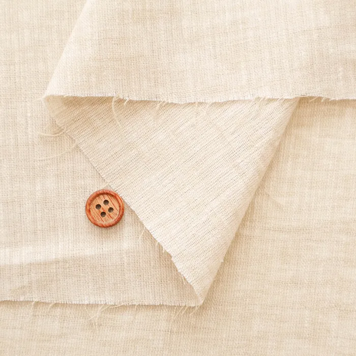 麻ならではの清涼感のある風合いと、程よい薄さが特徴で、春夏向けの服地素材としておすすめです。