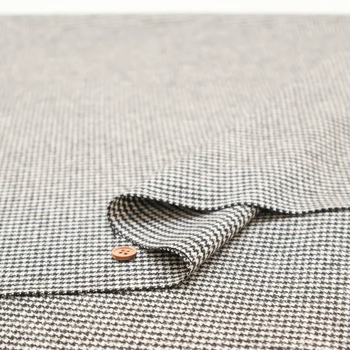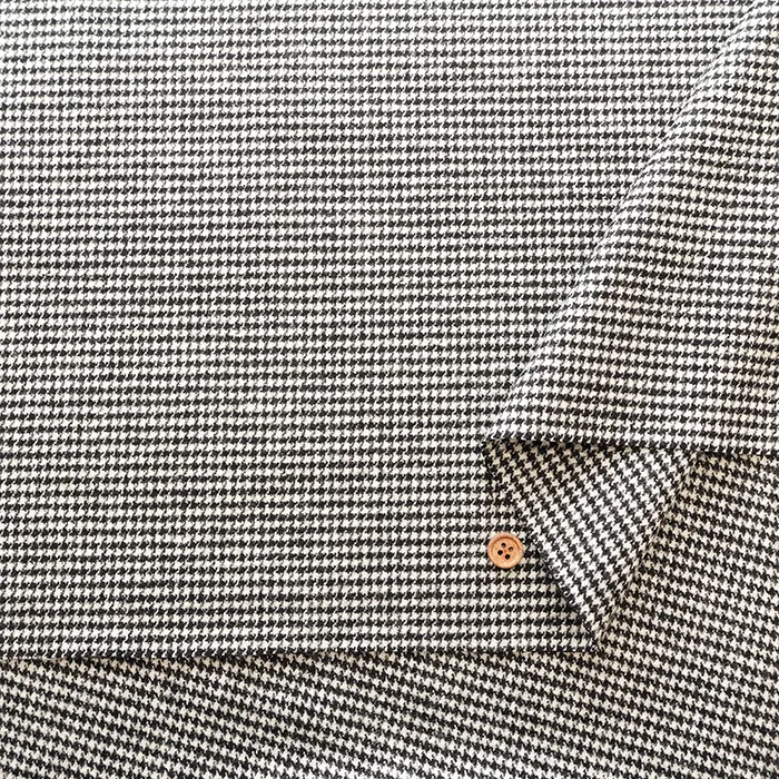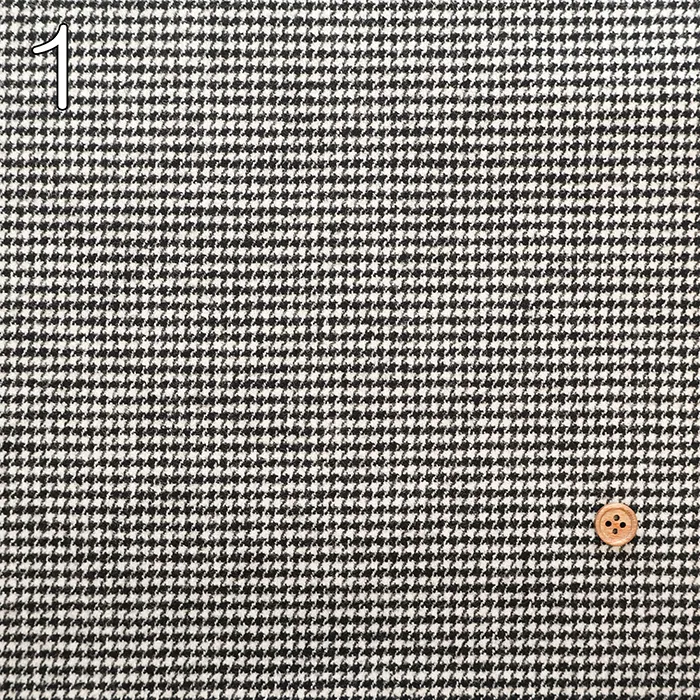 ツイード生地は複数の色糸で織り上げるため、独特のざっくりとした風合いと色合いが特徴です。耐久性に優れ、高い保温性を持つことから秋冬向けの服地素材として人気があります。