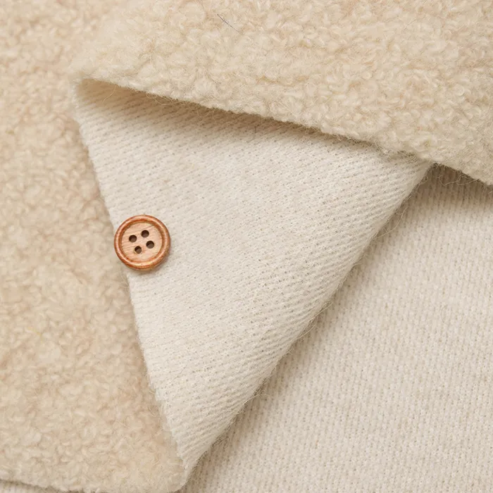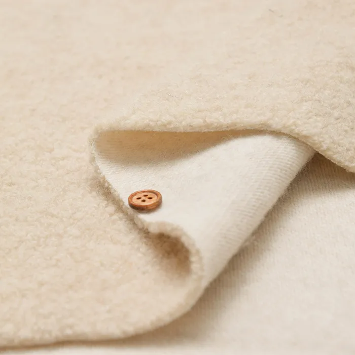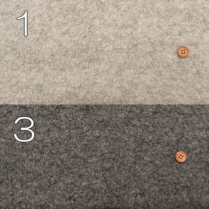 程よい厚みで、モコモコとした肌触りのウール素材の生地です。
