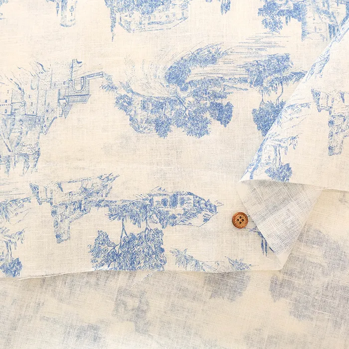 イタリア製 QUORUM リネンプリント生地 ジュイ風