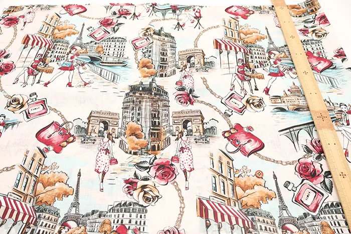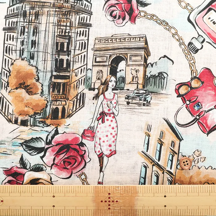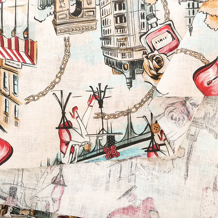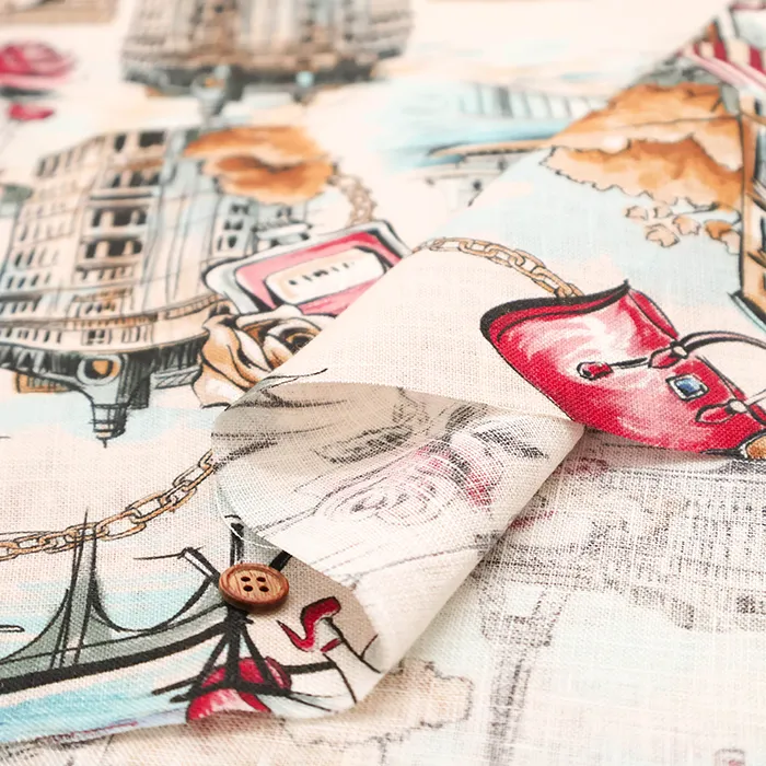 イタリア製 QUORUM リネンプリント生地 街並